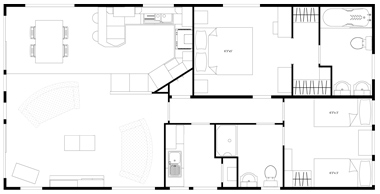 The lodge also includes a shower room with Jack 'n' Jill doors from the second bedroom and the hall.