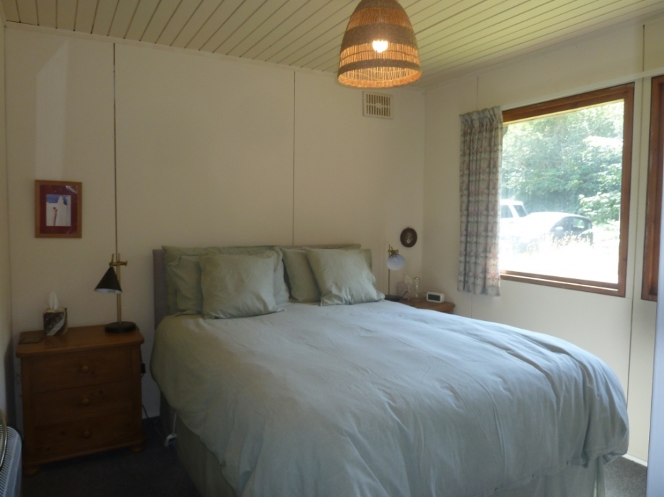 Good size double bedroom window to the side .carpeted wall mounted panel heater. Pendant light