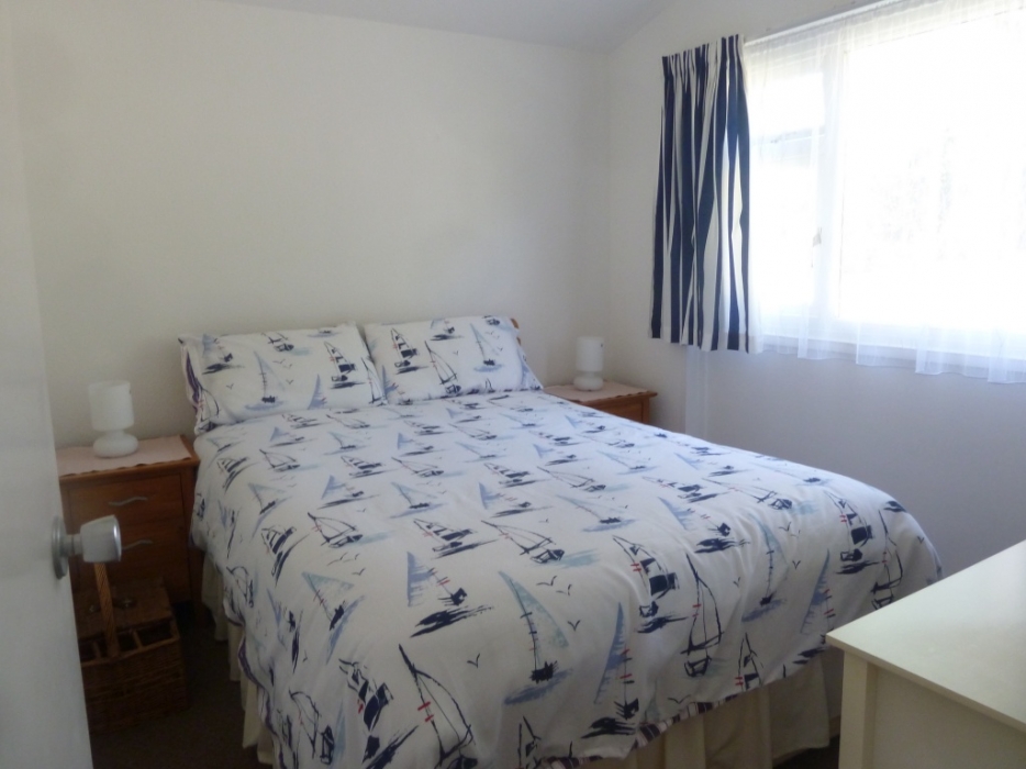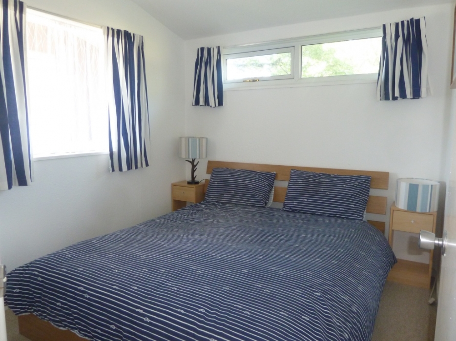 Access to shower room and second double bedroom. Built-in wardrobe with pine wood doors and shelving.