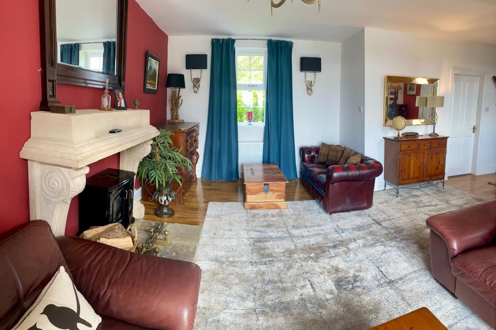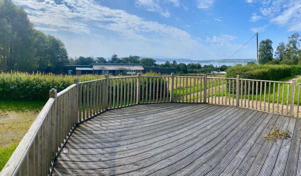 Large decking to the front , Side and back garden mostly laid to lawn with mature bushes and hedges. The Oil tank is located to the side. Parking for several cars. Plenty space for a shed or garage .